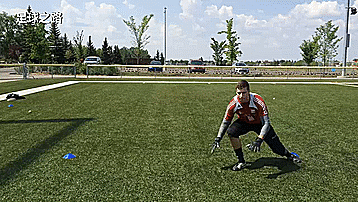 第二步是侧身扑救,扑救时准备扑向哪个方向就用哪条腿发力,发力时腿要弯曲,这样可以最大程度地发上力;